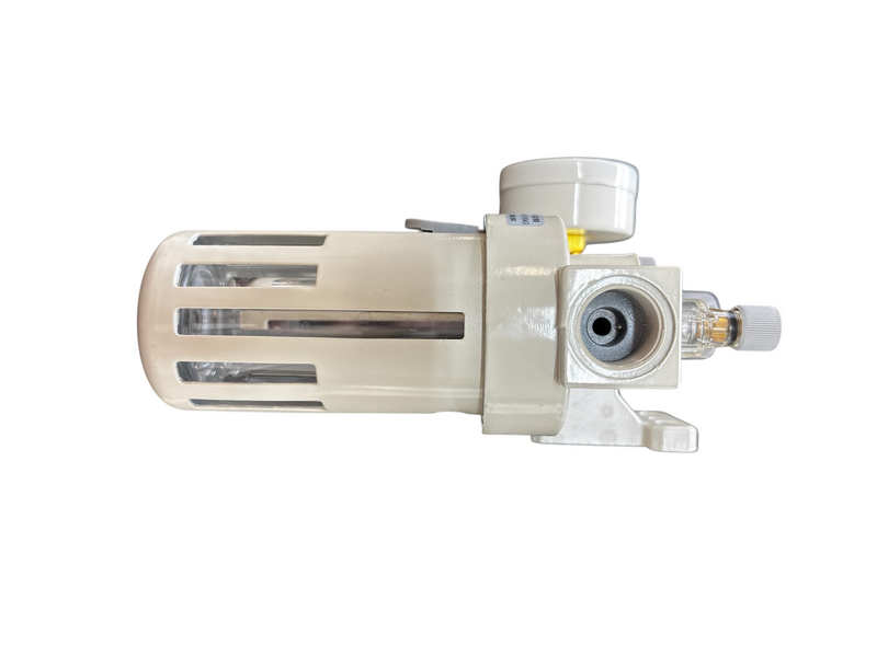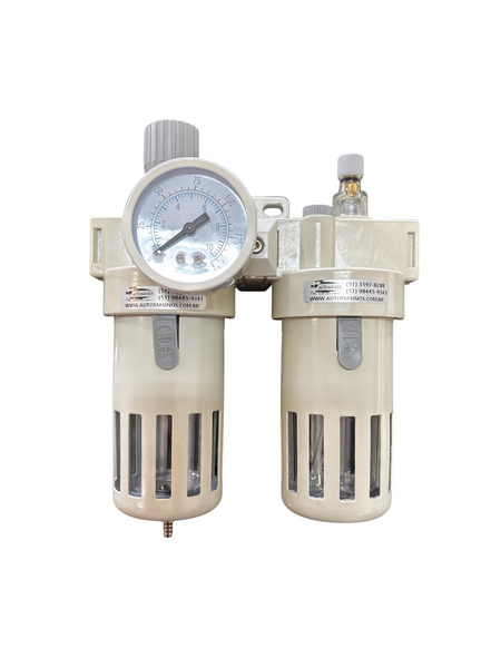 A unidade de preparação de ar Linha White da Automasinos reúne filtro regulador e lubrificador em um só conjunto, possibilitando o ajuste da pressão, a eliminação de partículas e umidade e a aplicação controlada de óleo no ar comprimido. Esse conjunto contribui para aumentar a durabilidade dos componentes e garantir um funcionamento mais eficiente e confiável do sistema pneumático