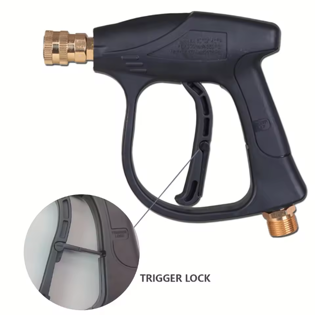 Pistola de alta pressão com rosca macho M22 e engate rápido, ideal para uso com bicos para lavadora, sistemas Snowfoam e lavadoras de até 4350 PSI. Projetada para garantir desempenho, praticidade e segurança, oferece excelente vazão. Fabricada com materiais de alta resistência, proporciona durabilidade, vedação confiável e operação confortável mesmo em uso contínuo.
