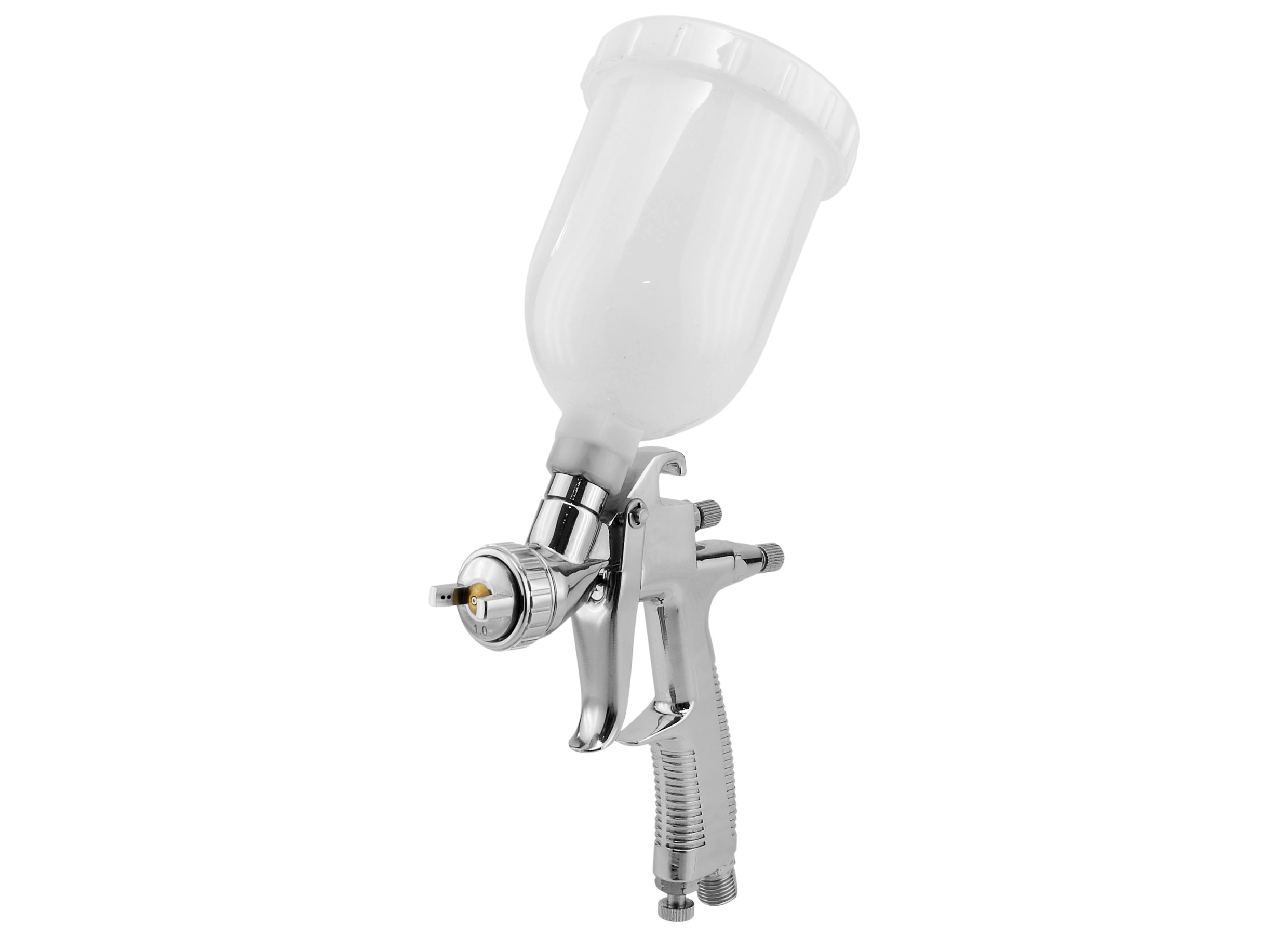 A Pistola para pintura BC 77 é uma pistola de pequeno porte que proporciona alta eficiência em termos de qualidade de pintura, devido sua excelente atomização, sendo recomendada para uso profissional. É equipada com regulagem de abertura do leque e também possui controle do fluxo de ar e controle da vazão da tinta. É uma pistola versátil pois atende bem a trabalhos de superfícies estreitas e também áreas mais amplas devido à regulagem de abertura do leque.