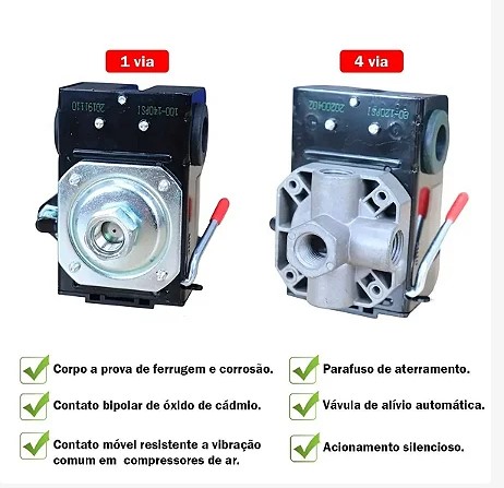 PRESSOSTATO PARA COMPRESSOR AR 125/175lbs