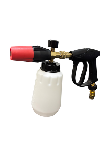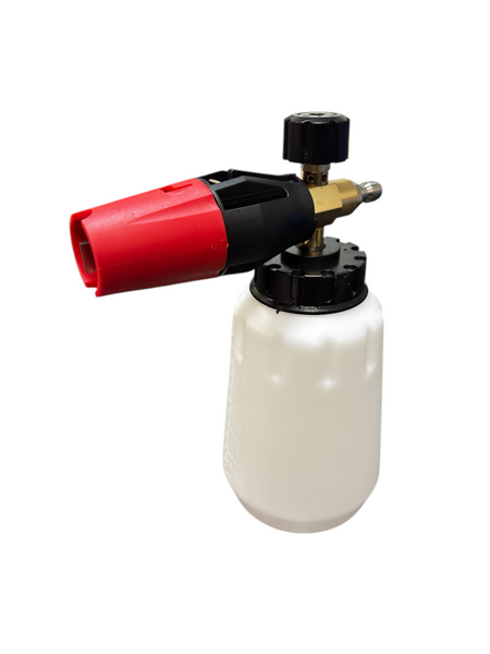 Canhão de espuma Snowfoam com conexão engate rápido 1/4”, bico ajustável e reservatório de 1 litro, ideal para uso em lavadoras de alta pressão de até 4000 PSI. Desenvolvido para gerar espuma densa e uniforme, facilita a limpeza automotiva e industrial, removendo sujeiras com eficiência e economia de produto. Possui ajuste de vazão e leque, permitindo controle total na aplicação. Fabricado com materiais resistentes e duráveis, garante excelente desempenho e longa vida útil.